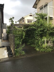 今回のご依頼は駐車場に伸びたツル撤去です。