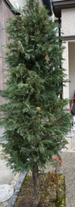 写真では分かりにくいのですが…前方に傾いております。直そうと揺すって木